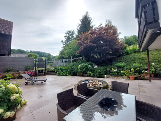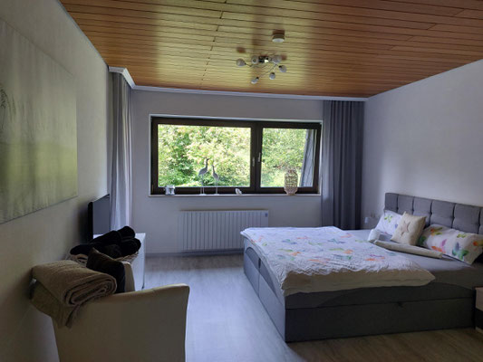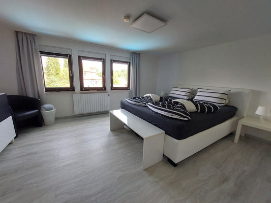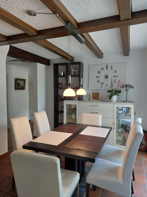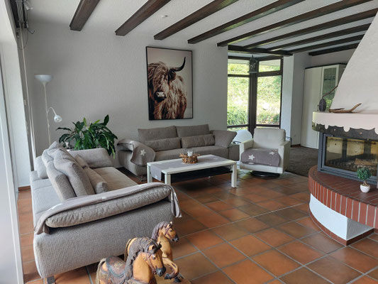 Das EG besteht aus einem großen Wohnzimmer mit schöner Aussicht in den eingezäunten Garten, dem ersten Doppelschlafzimmer, einer hochwertig ausgestatteten Küche, Esszimmer mit gemütlichen Kaminofen, einem frisch renovierten Duschbad mit WC und einem seperaten WC.
